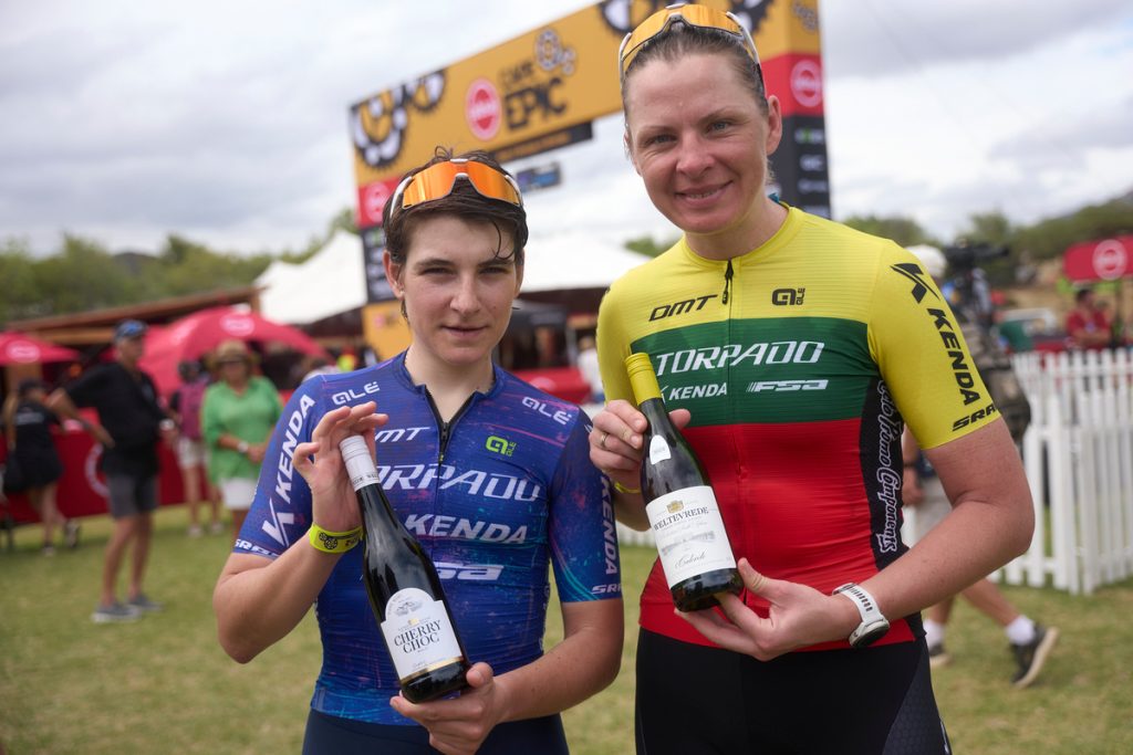 U ženskoj kategoriji, Candice Lill (RSA) i Alessandra Keller (SUI, Thömus Maxon Sabi Sabi) ostvarile su treću uzastopnu pobjedu. Južnoafrička prvakinja Lill i njezina partnerica Keller prevladale su trasu od 80 kilometara s 1.750 metara uspona u vremenu tri sata i 30 minuta. Drugoplasirane Kate Courtney i Greta Seiwald iz ekipe She Sends Foundation stigle su 37 sekundi kasnije, čime su učvrstile svoju drugu poziciju u ukupnom poretku. Drama se dogodila u redovima do tada trećeplasirane ekipe Buff-BH Efficient Infiniti kada je Rosa Van Doorn probušila gumu odmah nakon prvog uspona te je bila prisiljena voziti na “spužvi” sve do sljedeće tehničke zone.